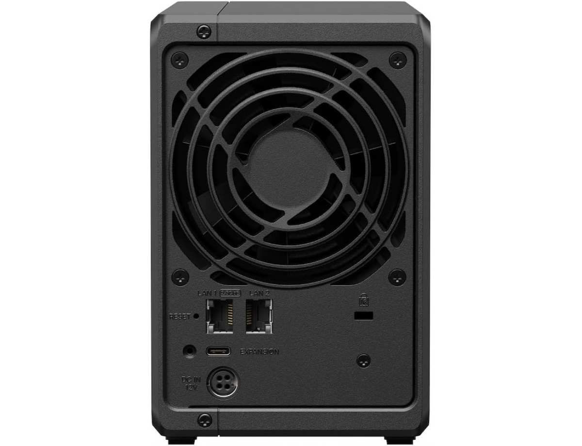 Το DS725+ διαθέτει ενσωματωμένη δικτύωση 2.5GbE και υποστηρίζει τόσο SSD όσο και σκληρούς δίσκους SATA σε εσωτερικές υποδοχές 2.5"/3.5", καθώς και μονάδες M.2 NVMe μέσω υποδοχών M.2 για χρήση ως προσωρινή μνήμη.