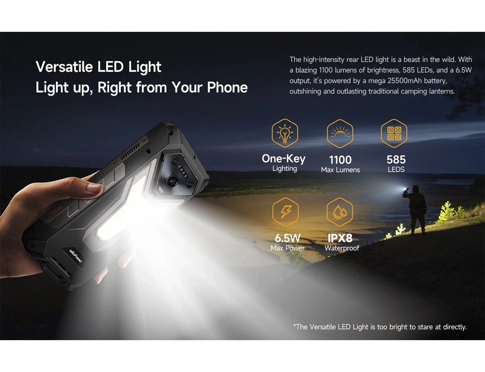 - Φακός: 1100 Max Lumens, 585 LEDs, 6.5W
