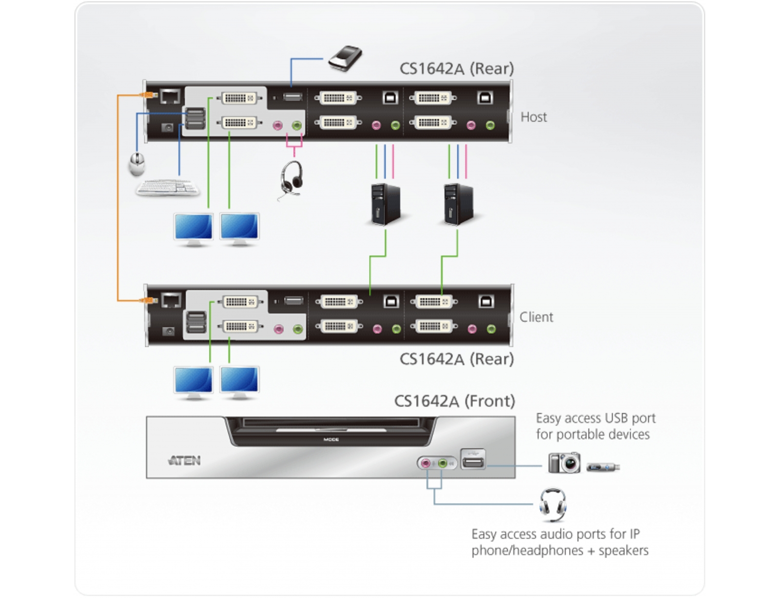 | Θύρες | 2x USB Type B (F), 4 x DVI-I (F), 4x 3.5mm Audio Jack, 1 x RJ-45, 1 x DC Jack, 2x USB Type A (F) |