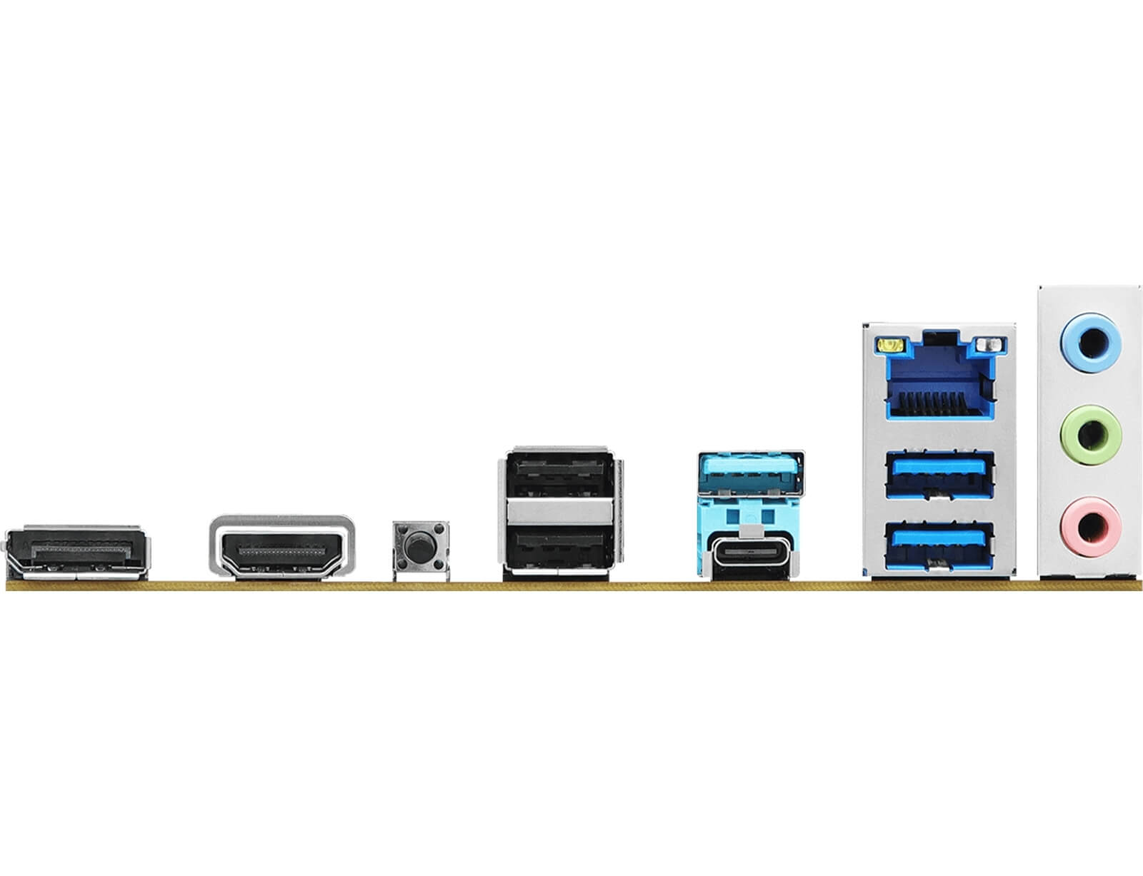 | Εξωτερικές θύρες | - 2 x Antenna Mounting Points - 1 x HDMI Port - 1 x DisplayPort 1.4 - 1 x USB 3.2 Gen1 Type-C Port - 3 x USB 3.2 Gen1 Type-A Ports - 2 x USB 2.0 Ports - 1 x RJ-45 LAN Port - 1 x BIOS Flashback Button - HD Audio Jacks: Line in / Front Speaker / Microphone |