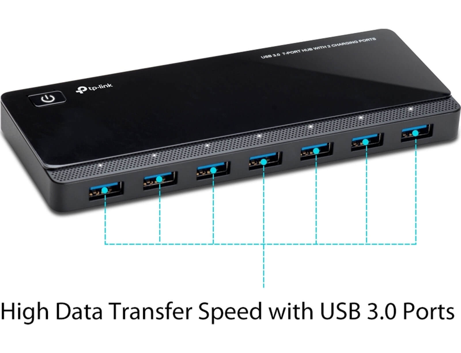 Θύρες USB 3.0 που παρέχουν ταχύτητες μεταφοράς έως 5Gbps, 10 φορές γρηγορότερες σε σχέση με τις USB 2.0. 7 θύρες για μεταφορά δεδομένων που σας απαλλάσσουν από το άγχος της έλλειψης θυρών USB. Δύο αποκλειστικές θύρες 5V/2.4Α, για φόρτιση συσκευών. Παρέχουν αρκετή τάση για φόρτιση όλων των ειδών φορητών συσκευών.