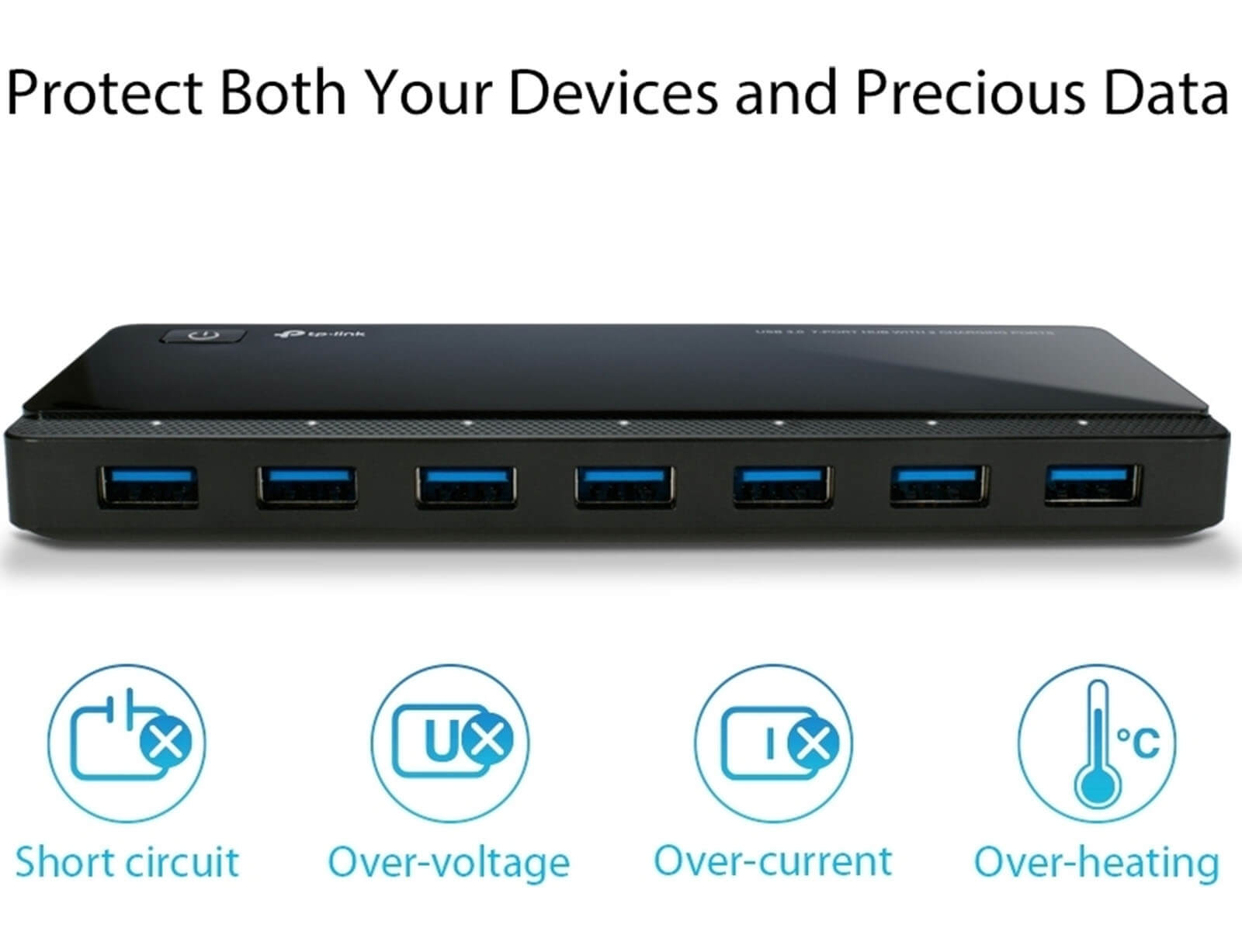 Το UH720 διαθέτει εξελιγμένο σχεδιασμό κυκλώματος με πολλαπλές προστασίες για τις συσκευές σας από υπερθέρμανση , υπερβολικό ρεύμα, υπέρταση και βραχυκύκλωμα. Ένα ενσωματωμένο προστατευτικό υπέρτασης διατηρεί τις συσκευές και τα δεδομένα σας ασφαλή κατά τη διαδικασία μεταφοράς δεδομένων. Το UH720 υποστηρίζει εναλλαγή θυρών USB που μπορούν να συνδεθούν και να αποσυνδεθούν με ασφάλεια ενώ ο υπολογιστής είναι ενεργοποιημένος και σε λειτουργία.