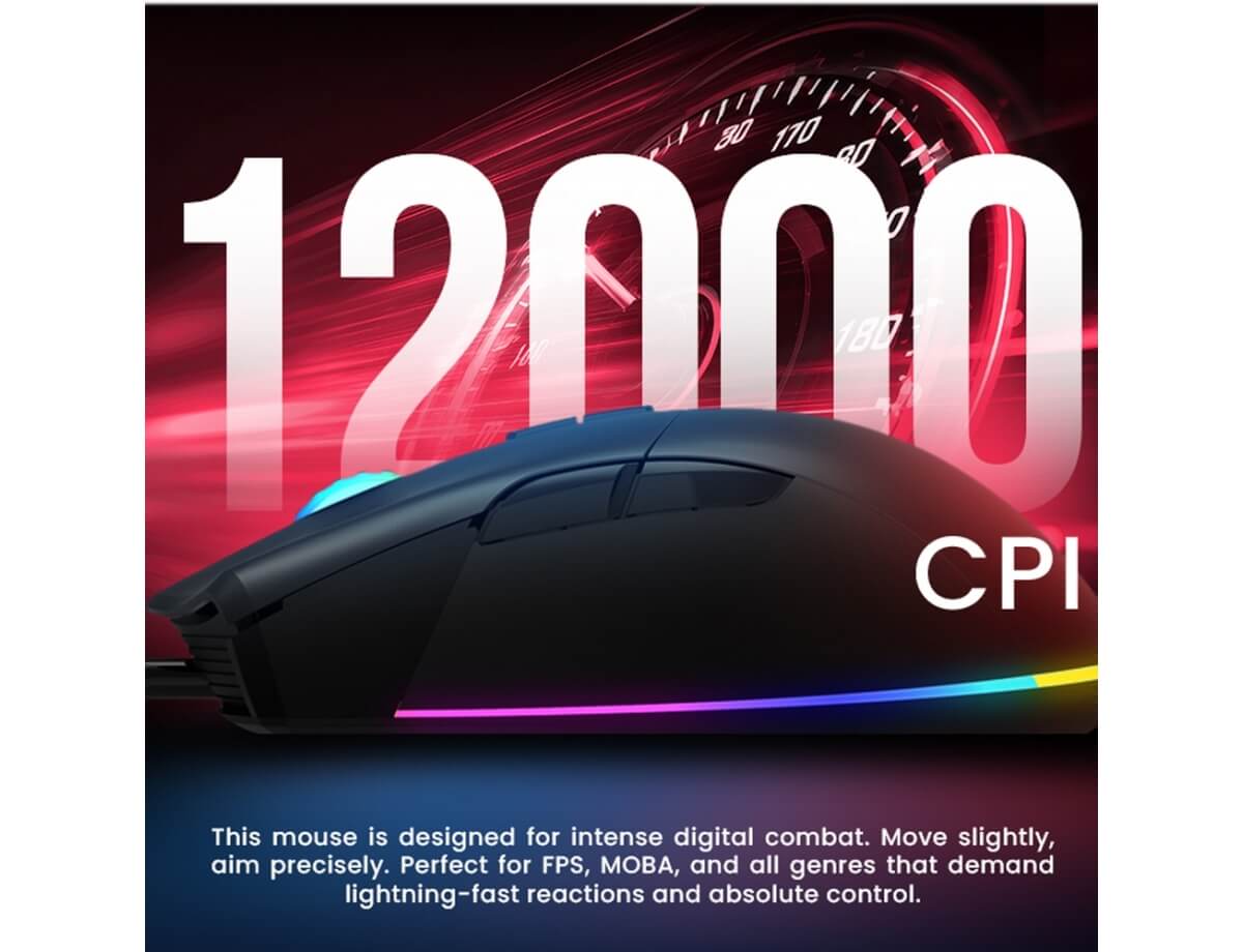 Eίναι ένα ενσύρματο ποντίκι gaming με δυνατότητα μακροεντολών μέσω USB , κατασκευασμένο για gamers που απαιτούν ακρίβεια, απόκριση και πλήρη προσαρμογή . Με το IC 3327 Advanced Gaming Chipset , προσφέρει έως και 12.000 CPI , καθιστώντας το κατάλληλο για FPS, MOBA και ανταγωνιστικά gaming.