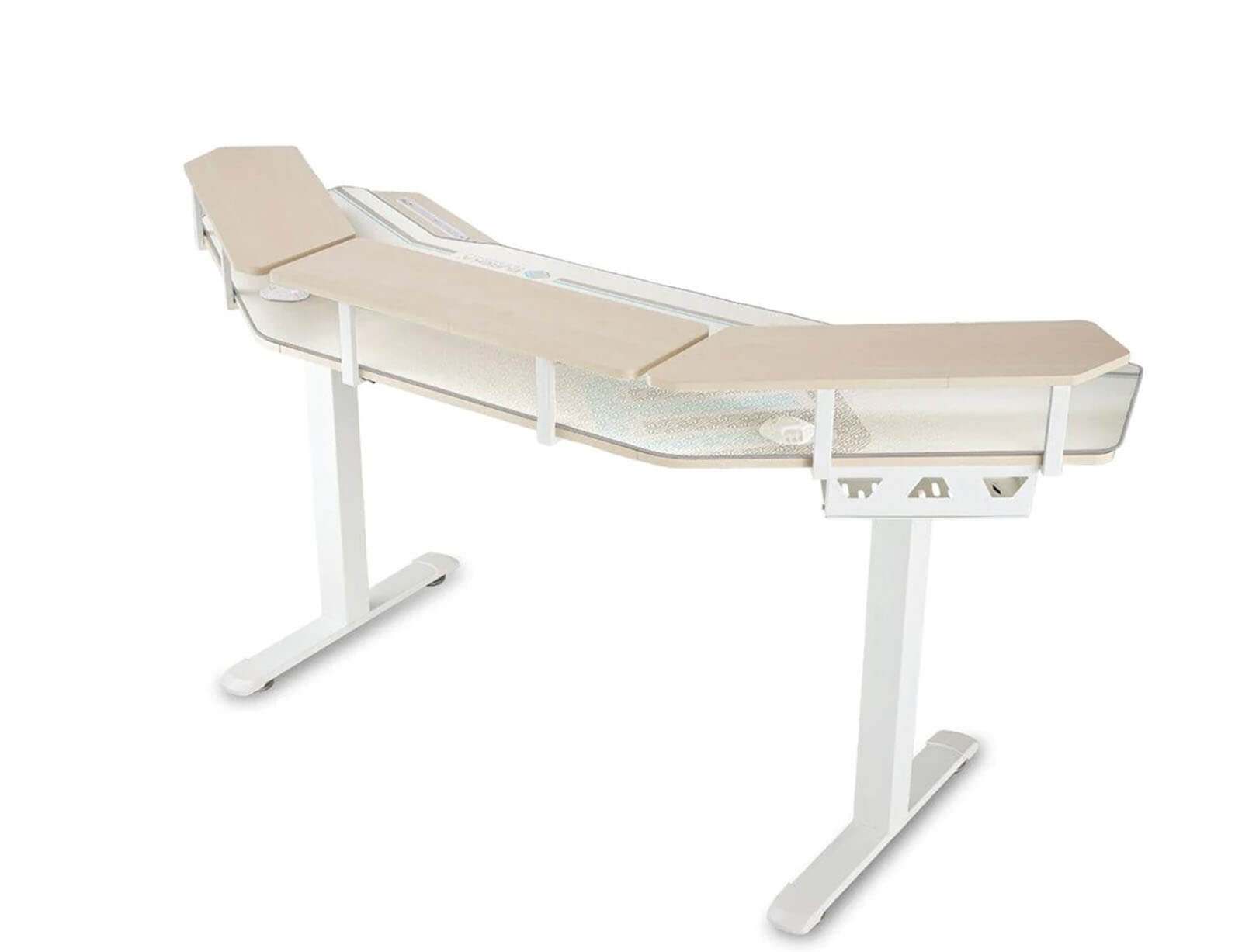 Το γραφείο διαθέτει πληθώρα έξυπνων εργονομικών λύσεων, όπως δίσκο πληκτρολογίου, ράφια οθόνης, υποδοχές φορητών συσκευών, γάντζο ακουστικών και ποτηροθήκη, διατηρώντας τον χώρο πάντα οργανωμένο. Ο ελεγχόμενος RGB φωτισμός ολοκληρώνει την εμπειρία, δημιουργώντας μοναδική gaming ατμόσφαιρα που ξεχωρίζει.