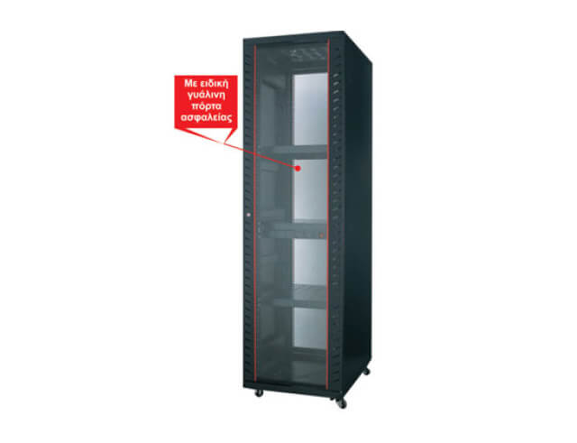 - Εμπρόσθια πόρτα γυάλινη, ασφαλείας και χειρολαβή με κλειδαριά ασφαλείας.