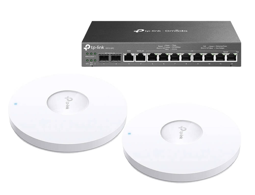 Networking Set με 2 Access Point TP-Link EAP613 AX1800 - WiFi 6 - Dual Band & Gigabit VPN Router TP-Link ER7212PC Omada 3in1 με 110 W PoE Budget