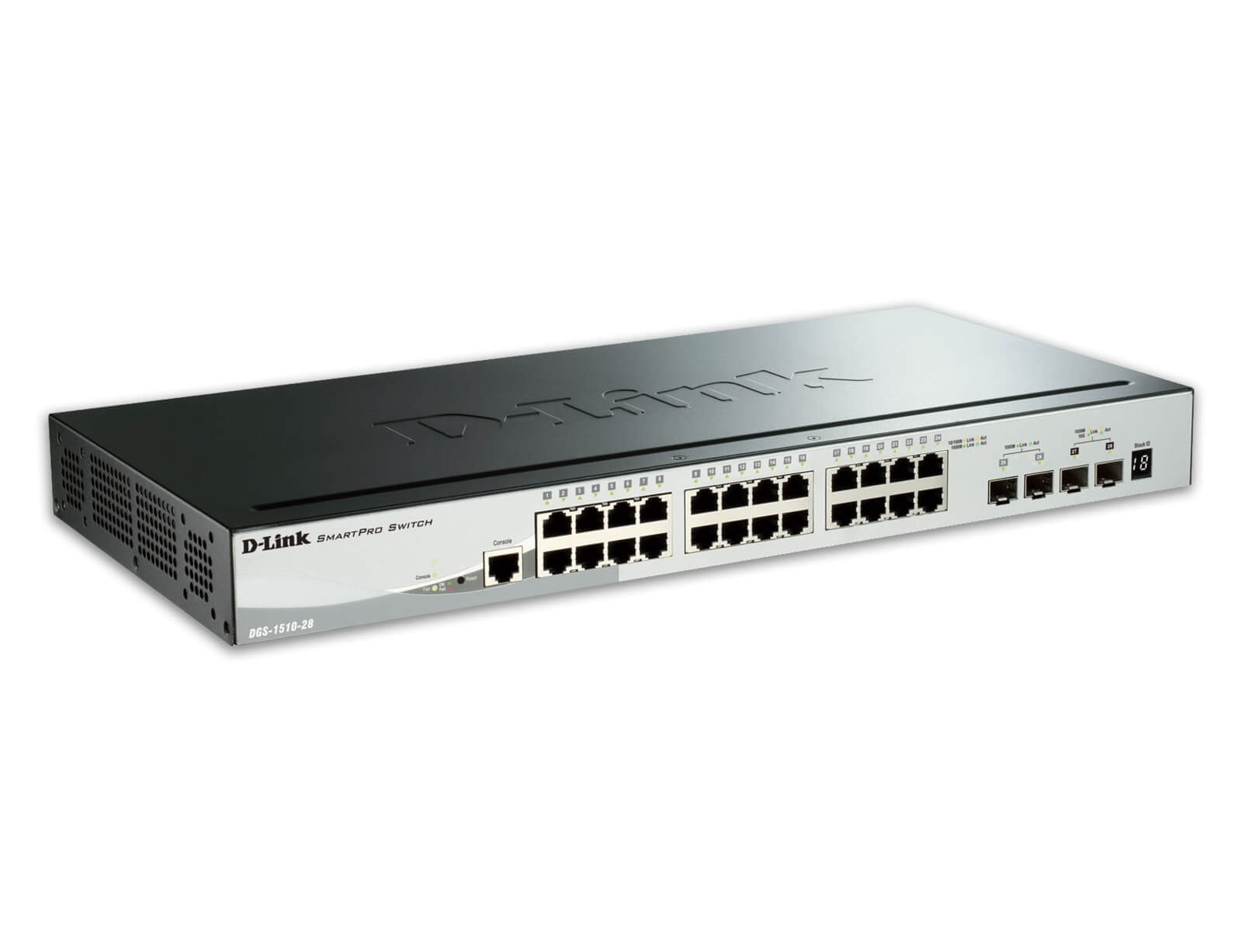 Switch D-Link Stackable (DGS-1510-28XMP) - L2, Managed, PoE, 4x SFP, 24x Ports, 10/100/1000 Mbps