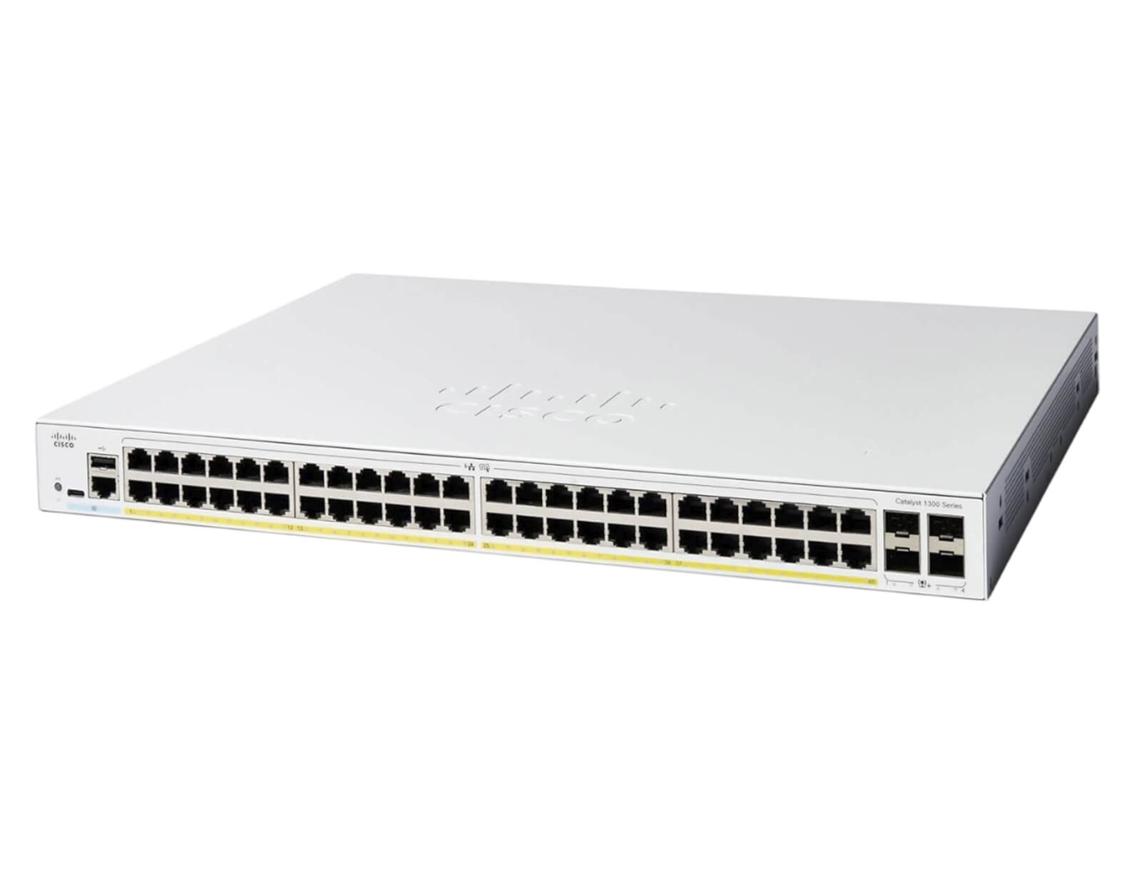 Switch Cisco Catalyst 1300 (C1300-48P-4X) - Managed, L3, PoE+, 48x Ports + 4x10GE SFP+ Ports, 10/100/1000 Mbps