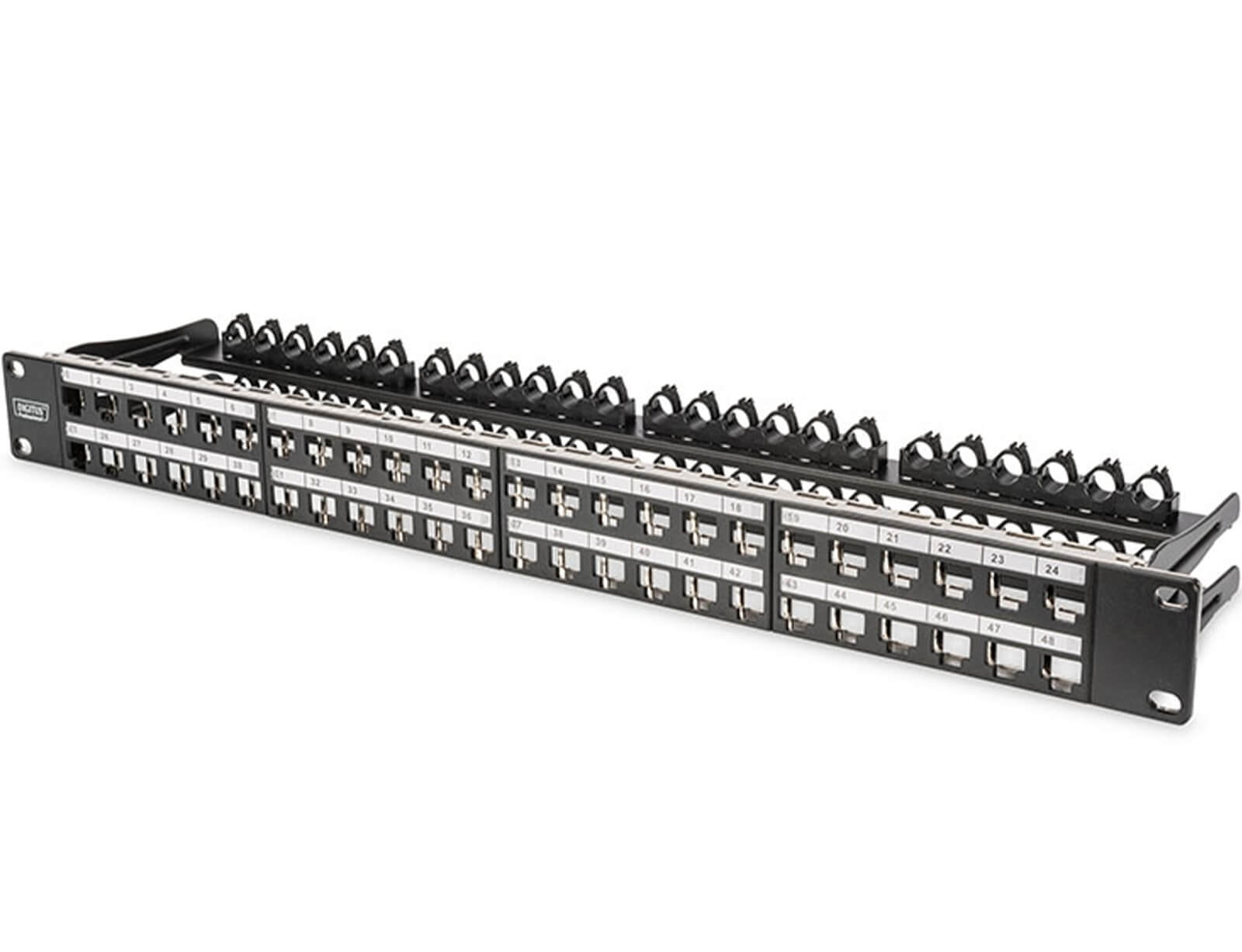 Keystone Patchpanel Digitus 1U 48 ports Shielded με στήριγμα (DN-91424) - Black
