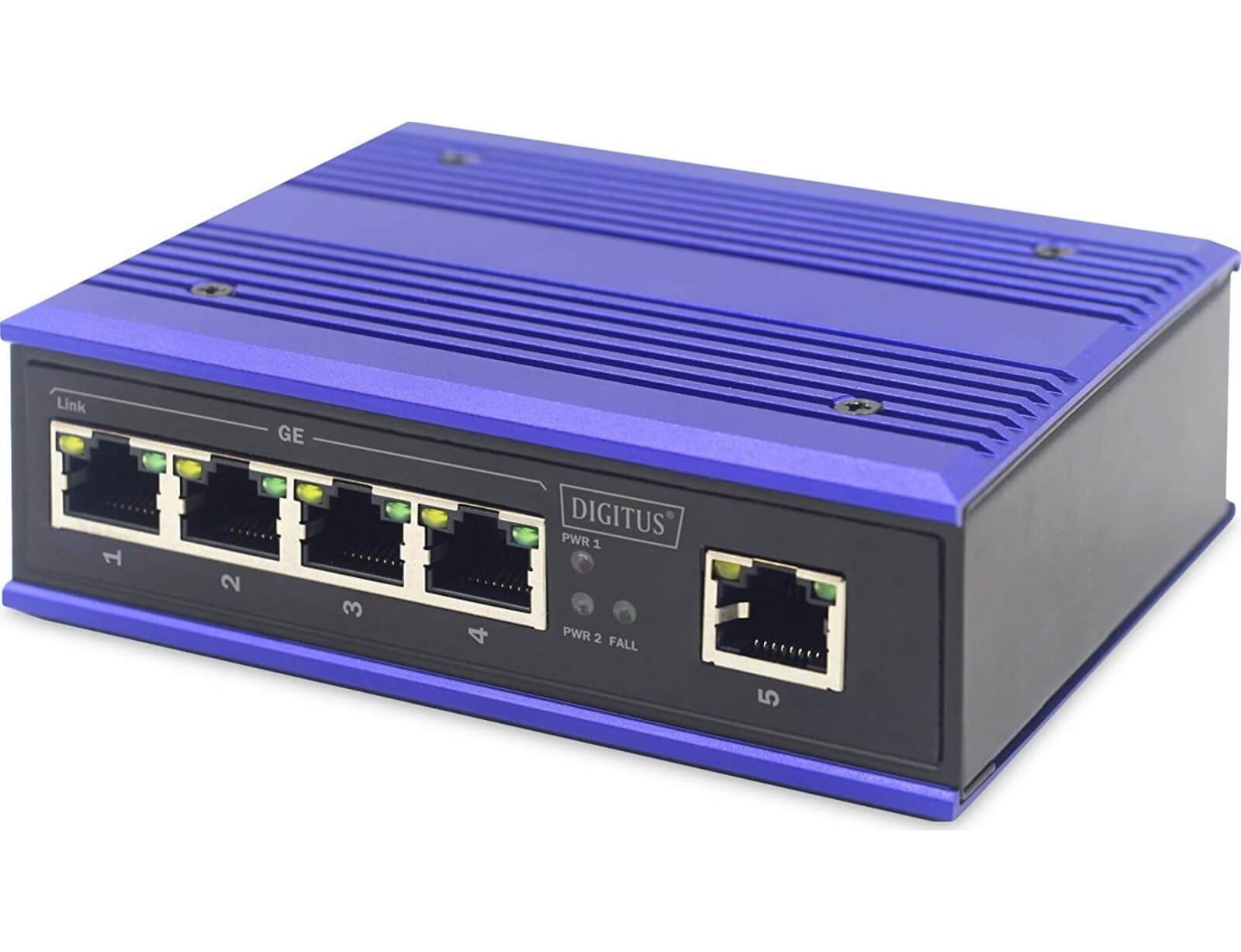 Switch Digitus Industrial (DN-650105) - 5x ports, Unmanaged, RJ-45 Ethernet, 10/100Mbps - Purple