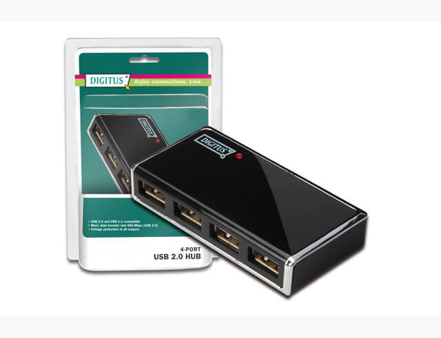 USB Hub Digitus DA-70220 - USB 2.0 - 4 Ports - Black